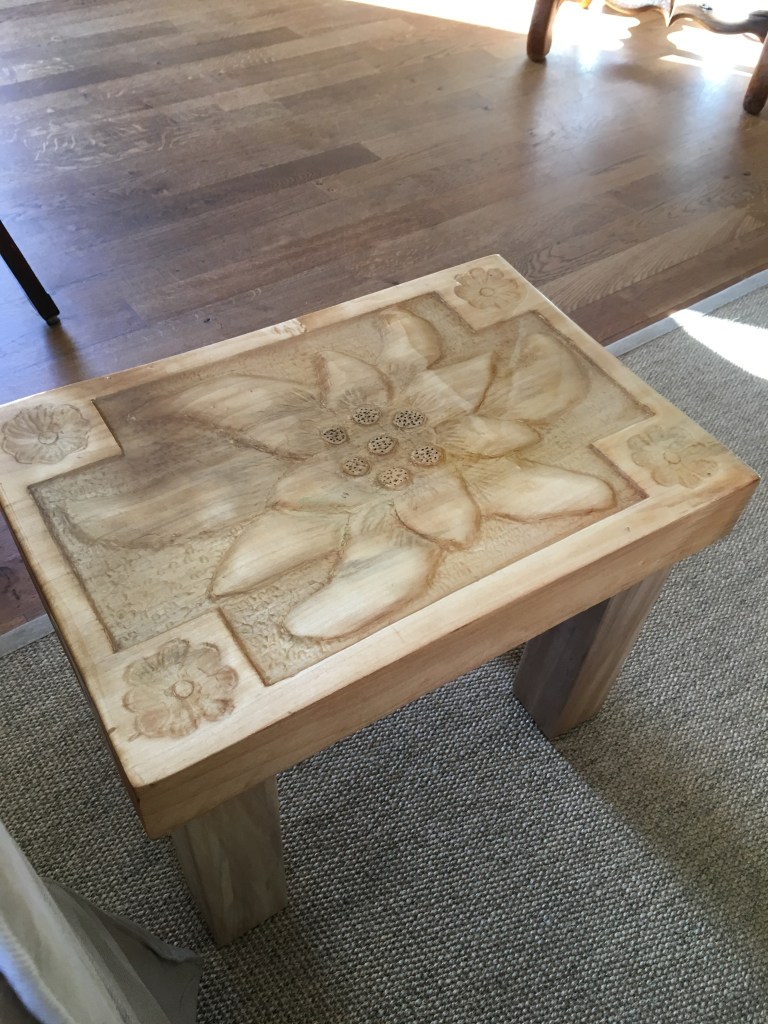 Schapenkop. onder constructie. Verlijmd LindehoutSchaap. Lindehout, schapenvacht op krukjeSchaap. Lindehout, schapenvacht op krukjeBijzettafeltje, relief Edelweiss in Popolierenhout verzegeld met kunstharsBijzettafeltje, relief Edelweiss in Popolierenhout verzegeld met kunstharsSnijplank Chalet voorzijde Snijplank chalet achterzijde